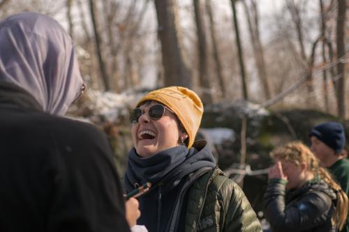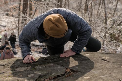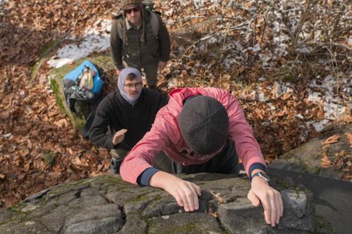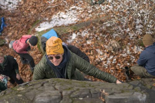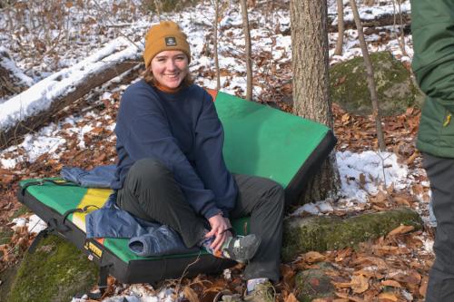 Conditions down in the boulder field were fairly warm, although a bit damp and with fresh snowfall in the woods. Sunlight from the south dried things up pretty quick, but any passing clouds cooled things down and jackets were quick to be put back on. The Diabase Double Down is a fundraising event run by the South Central Pennsylvania Climbers. Funds go towards opening Governor Stable, which is on private land and leased each year for climber use.