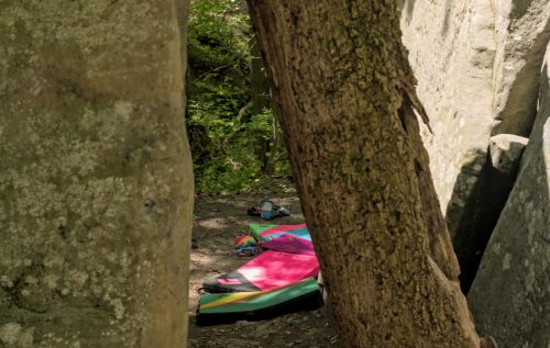 When an earlier weekend camping trip to Coopers Rock got rained out, a few friends and I made plans to make a day trip out to West Virginia on Memorial Day. After an early start and a long drive, we made our way to the Tilted Tree Corridor where we ran into a few other climbers. Turns out, they were also from Maryland, and we had a few mutual acquaintances from The Boulder Yard in Frederick (shoutout to Rich), and we all joined up for the rest of the day.